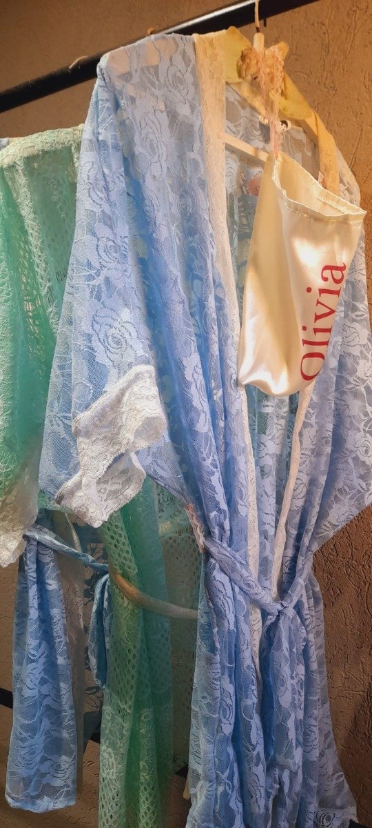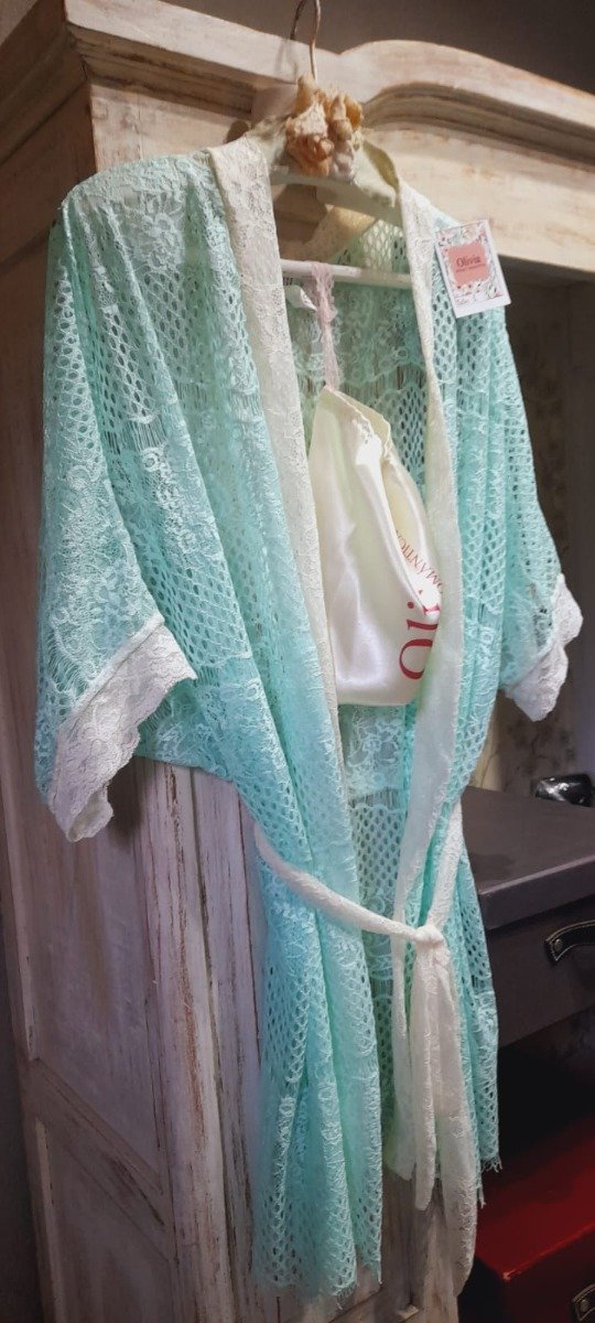Bata realizada en tul elastizado, detalles de pintillas en mangas. Packaging bolsa de tela